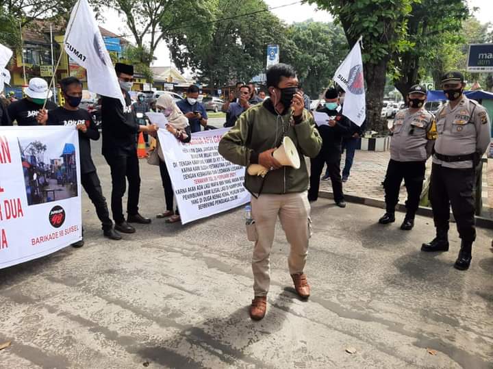 PALEMBANG BARU, PALEMBANG – Geruduk kantor Pertamina, Barikade 98 Sumatera Selatan (Sumsel) desak Pertamina untuk melakukan penertiban dan pengamanan kawasan depot pengisian BBM di Kertapati.