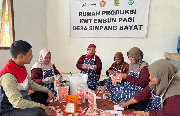 Musi Banyuasin, PB – Menjelang azan Magrib, dapur-dapur di Desa Simpang Bayat yang berada di sekitar wilayah operasi PHE Jambi Merang mulai sibuk. Aroma cendol dawet yang manis bercampur dengan aroma cuko yang mendampingi hidangan pempek. Tak banyak yang tahu, sebagian sajian berbuka itu kini dibuat dari tepung mocaf—tepung berbahan dasar singkong yang diolah sendiri oleh Kelompok Wanita Tani (KWT) Embun Pagi.