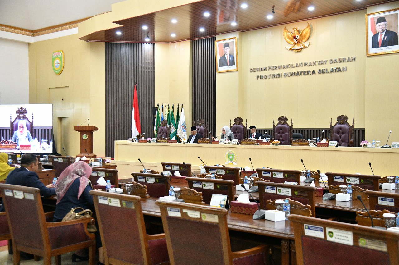 Rapat Paripurna dipimpin oleh Wakil Ketua DPRD Prov. Sumsel; Kartika Sandra Desi, SH dihadiri oleh Wakil Gubernur Prov. Sumsel Ir. H. Mawardi Yahya, Pimpinan OPD dilingkungan Pemerintah Provinsi Sumatera Selatan serta tamu undangan lainnya.