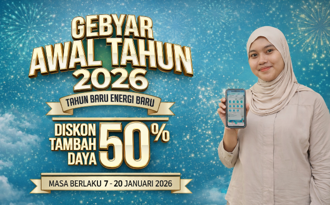 Jakarta, PB – Gebyar Awal Tahun 2026, PT PLN (Persero) kembali memberikan apresiasi kepada pelanggan melalui program spesial bertajuk “Tahun Baru Energi Baru”. Program ini menghadirkan promo tambah daya listrik diskon 50% bagi pelanggan yang melakukan transaksi pada aplikasi PLN Mobile.