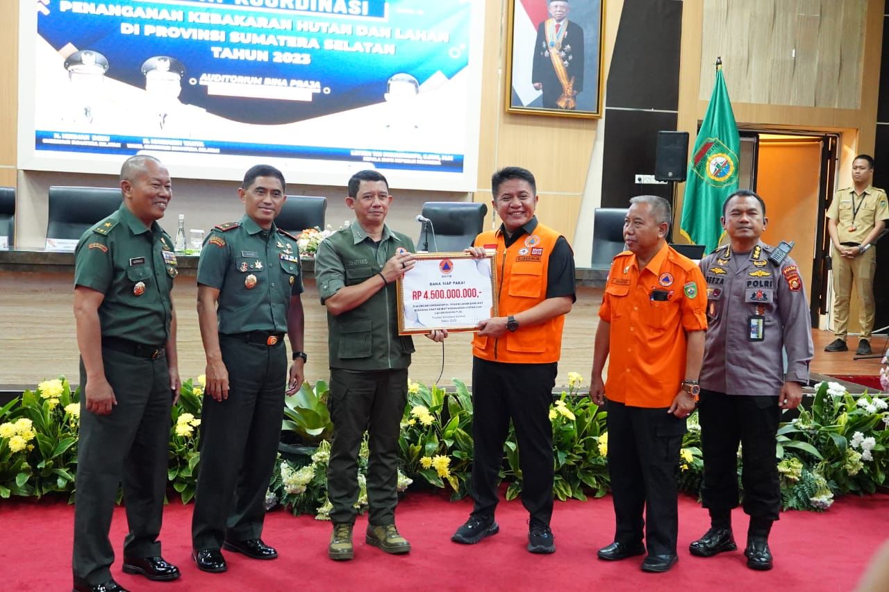 Dalam kesempatan itu, BNPB RI juga memberikan bantuan dana siap pakai penanganan karhutla di Sumsel senilai Rp4,5 milyar dan bantuan peralatan seperti APD, pompa jinjing, selang, pompa apung, nozel, tenda posko, dan velbet. (ADV/Son)