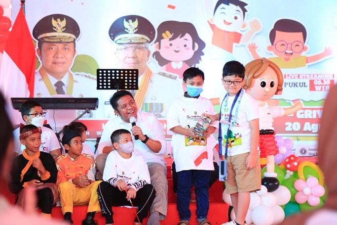 PALEMBANG, PB – Ratusan anak dari berbagai latar belakang pendidikan meramaikan peringatan Hari Anak Nasional (HAN) Provinsi Sumsel tahun 2022 di Griya Agung Palembang, Sabtu (20/8).