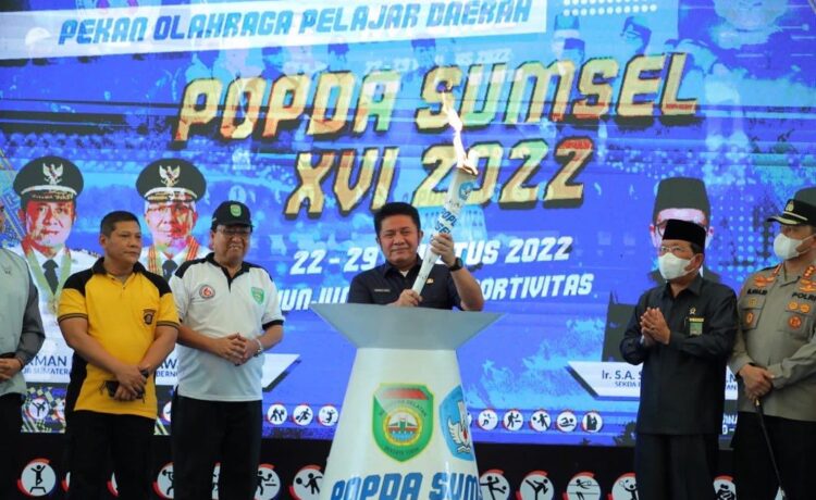 PALEMBANG, PB – Guna menjaring bibit atlet berprestasi dari penjuru Sumatera Selatan (Sumsel) untuk bertanding pada Pekan Olahraga Pelajar Nasional (Popnas) Tahun 2023 mendatang, Pemprov Sumsel menggelar Pekan Olahraga Pelajar Daerah (Popda) XVI tingkat Provinsi Sumsel tahun 2022 yang dibuka oleh Gubernur Sumsel H Herman Deru dipusatkan di Dinning Hall Jakabaring Sport City (JSC) Palembang, Selasa (23/8).