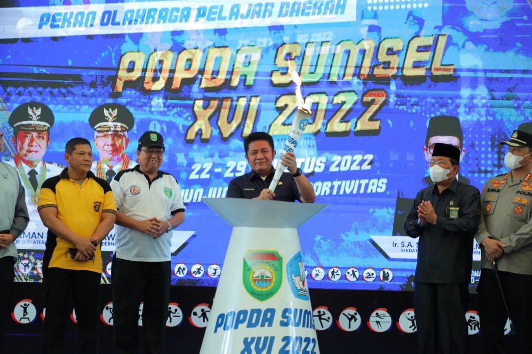 Untuk diketaui pada pembukaan Popda XVI Sumsel tersebut ditandai dengan penyulutan api obor oleh Gubernur Herman Deru sehingga menambah semarak pesta olahraga pelajar tersebut. (**)