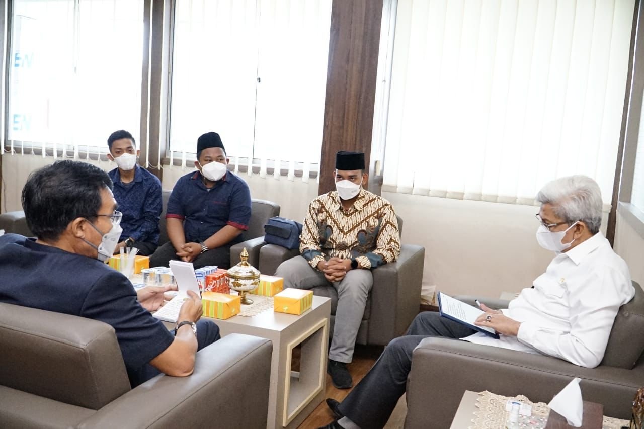 PALEMBANG BARU, PALEMBANG – Ditengah agenda kerjanya yang padat Wakil Gubernur Sumsel H Mawardi Yahya menerima audiensi pengurus harian Halaqoh Badan Eksekutif Mahasiswa (BEM) Pesantren Se-Indonesia 2021-2023, bertempat di Ruang Kerja Wakil Gubernur, Kamis (14/10).