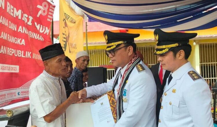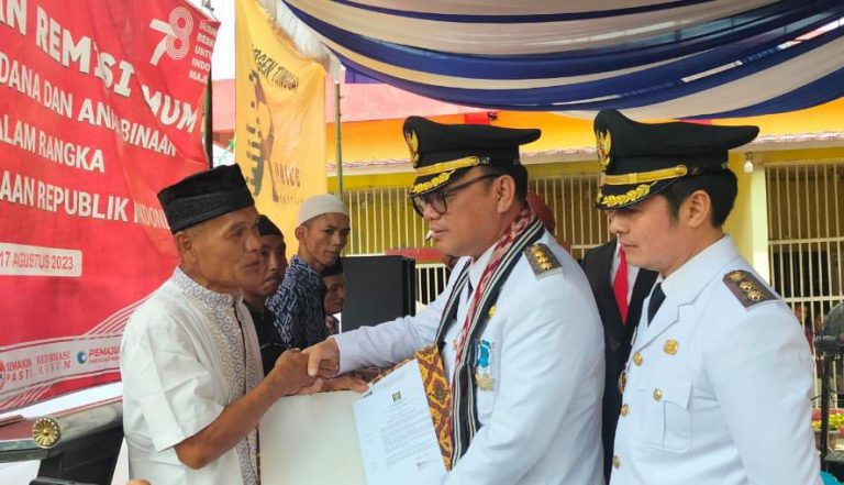 TEBING TINGGI, PB – Bupati Empat Lawang, H. Joncik Muhammad beserta Wakil Bupati Empat Lawang, Yulius Maulana, memberikan remisi secara simbolis kepada Warga Binaan (WB) di Lapas Kelas II B Empat Lawang.