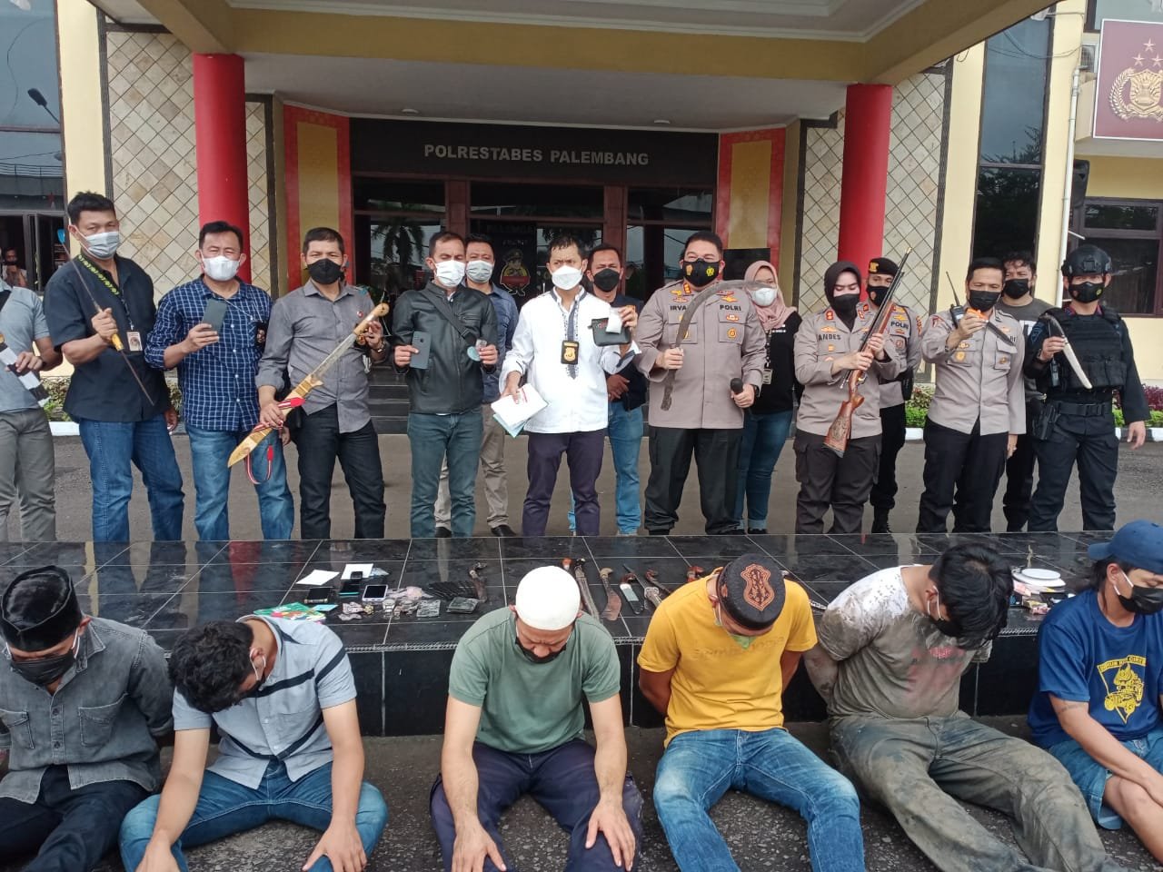 Dari hasil penggerebekan tersebut, belasan orang diamankan beserta barang bukti narkotika jenis sabu sebanyak 100 gram, puluhan senjata tajam (sajam), senapan angin, dua disc rekaman CCTV, timbangan, ponsel, kantong plastik bening, hingga buku rekap penjualan narkoba.
