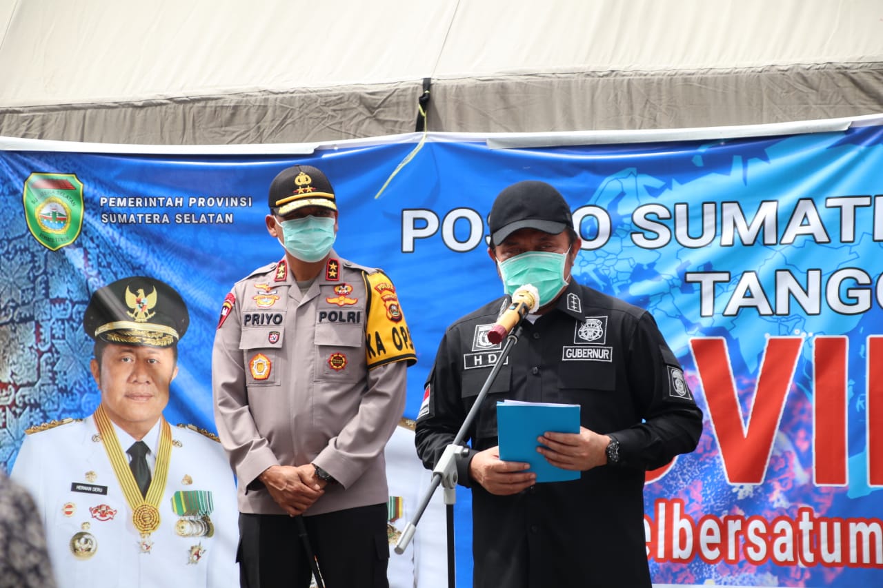 Didampingi Forkopimda Sumsel, Gubernur Sumsel H. Herman Deru menyampaikan, “Hari ini kita menunjukkan perbuatan kongkret, wacana tentang pencegahan Covid-19 bukan hanya dalam bentuk rangkaian kata saja, tapi tentu harus bersamaan dengan perbuatan, perbuatan tentu dilaksanakan dengan cara masing-masing, ujarnya.