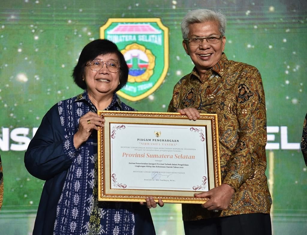 Terbaru Provinsi Sumsel masuk dalam tiga besar sebagai provinsi terbaik di Indonesia dalam ajang “NIRWASITA TANTRA” atau Penghargaan Green Leadership dalam kategori Pengelolaan Lingkungan Hidup dan Kehutanan Daerah tahun 2022 dari Kementerian Lingkungan Hidup dan Kehutanan (LHK) Republik Indonesia.