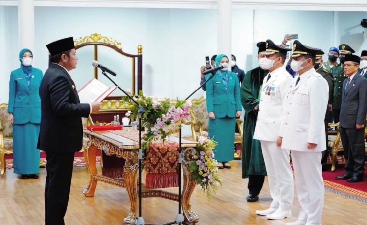 PALEMBANG, PB – Gubernur Sumsel H Herman Deru secara resmi melantik dan melakukan pengambilan sumpah jabatan terhadap Penjabat (PJ) Bupati Ogan Komering Ulu (OKU) H Teddy Meilwansyah dan PJ Bupati Muara Enim Kurniawan.