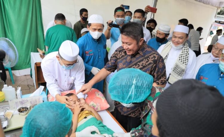 Gubernur Herman Deru didampingi kedua putrinya  Koordinator Wilayah ICSB Sumsel, Hj Samantha Tivani HD dan Duta Narkoba Sumsel, Ratu Tenny Leriva HD  pada kesempatan tersebut menyerahkan santunan  pada anak yatim dan dilanjutkan dengan peninjauan kegiatan khitanan massal.