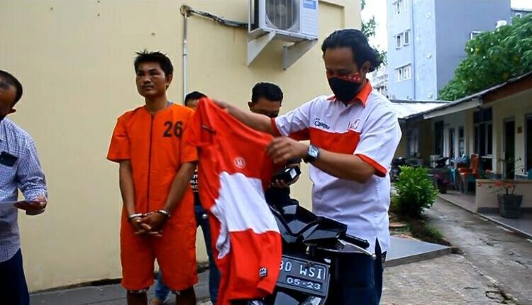 PALEMBANG BARU, PALEMBANG – Agung Saputra (26), satu dari dua pelaku jambret ponsel anak-anak yang videonya viral di jagat media sosial kota Palembang beberapa waktu lalu akhirnya ditangkap Jatanras Polda Sumsel.