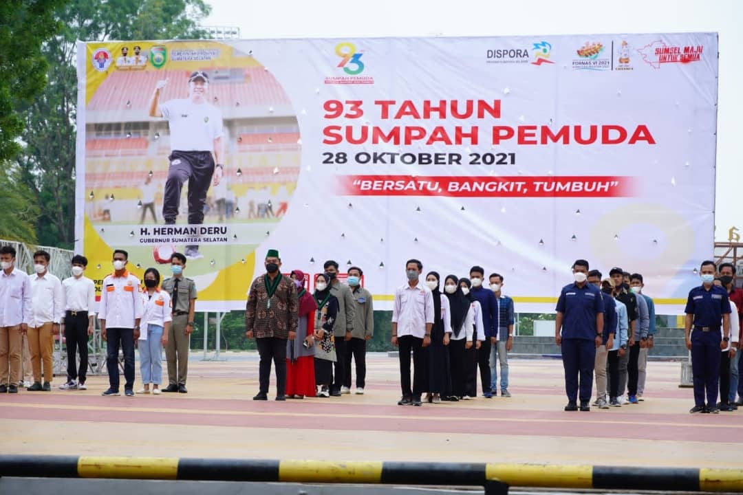 Sementara itu Menteri Pemuda dan Olahraga RI, Dr Zainudin Amali dalam amanat tertulisnya yang dibacakan Wagub Sumsel menyebut peringatan hari Sumpah Pemuda ke 93 yang jatuh pada 28 Oktober 2021 mengusung tema “Bersatu, Bangkit dan Tumbuh”.