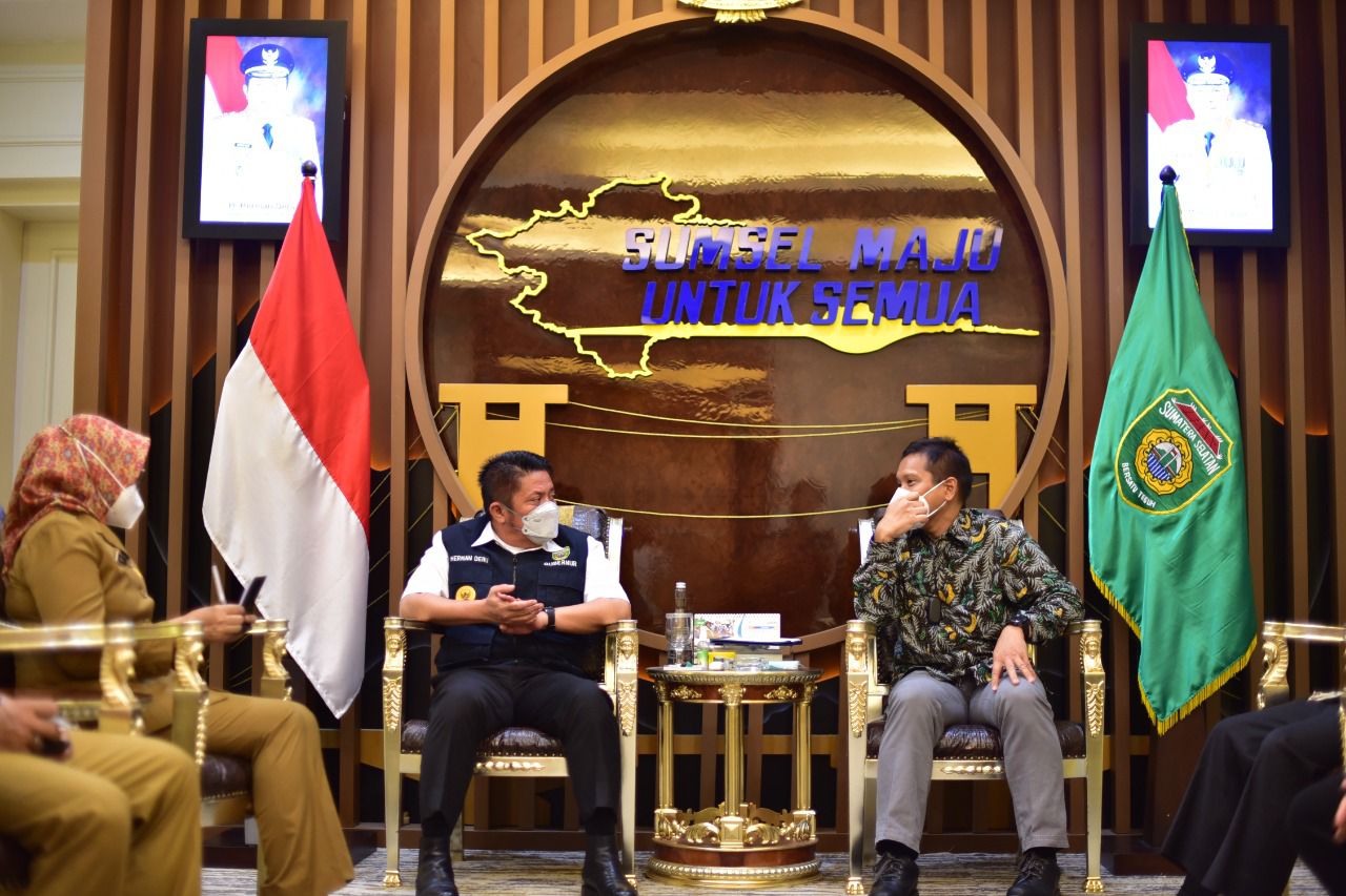 PALEMBANG BARU, PALEMBANG – Mengawali agenda kerjanya Senin (20/9) pagi, Gubernur Sumsel Herman Deru menerima audiensi Perwakilan SKK Migas Wilayah Sumbagsel Anggono Mahendrawan dan Direktur Pertamina Hulu Rokan (PHR) Jafee Arizon Suardin serta jajaran di ruang tamunya. Audiensi ini bertujuan meningkatkan koordinasi dan sinergi kegiatan hulu migas di Sumsel.