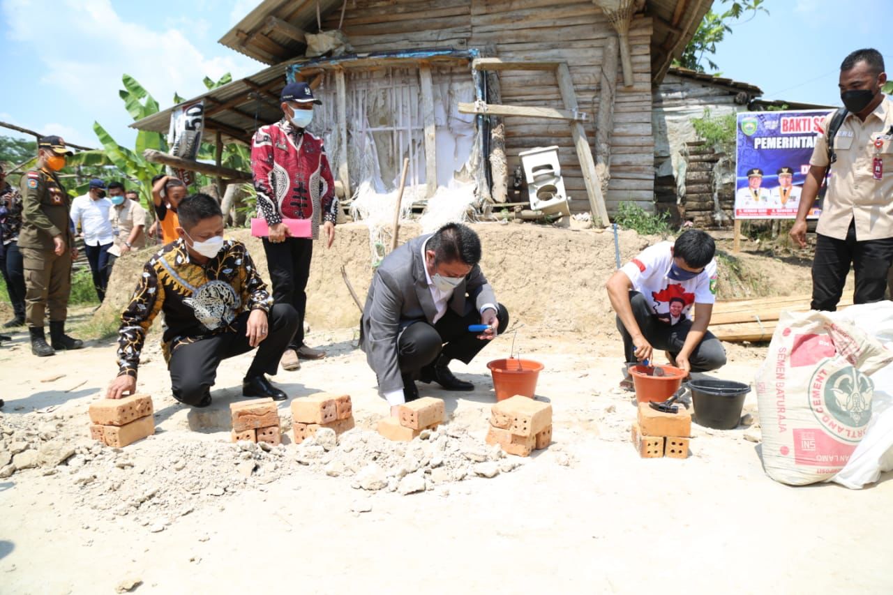 PALEMBANG BARU, OKU TIMUR – Dalam rangkaian lawatannya ke Kabupaten OKU Timur, (19/9), Gubernur Sumatera Selatan (Sumsel) H. Herman Deru juga berkesempatan meletakkan batu pertama tanda dimulainya program bedah rumah di daerah itu.