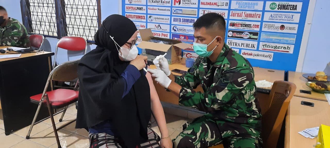 Palembangbaru.com, PALEMBANG, – Persatuan Wartawan Indonesia Sumatra Selatan (PWI Sumsel) bersama TNI dari Koramil 02 Pakjo menggelar vaksinasi Covid-19, Kamis (11/11) di halaman sekretariat PWI Sumsel, Jalan Supeno No 11 Palembang.