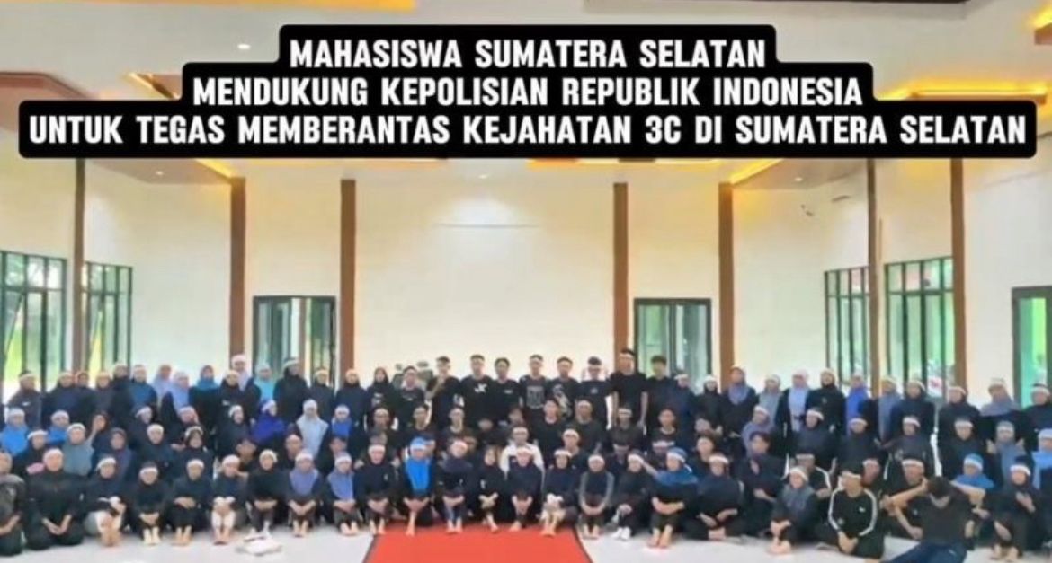 Palembang, PB – Deklarasi kecaman terhadap pelaku kejahatan 3C dan Dukungan Kepada Kepolisian Republik Indonesia untuk menindak tegas Pelaku Begal di Sumatera Selatan. Deklarasi tersebut dilakukan di Aula Puspenkom MAN 3 Palembang, pada tanggal 11 Oktober 2025, Pukul 19.00 sampai dengan selesai yang diikuti oleh ±150 Mahasiswa.