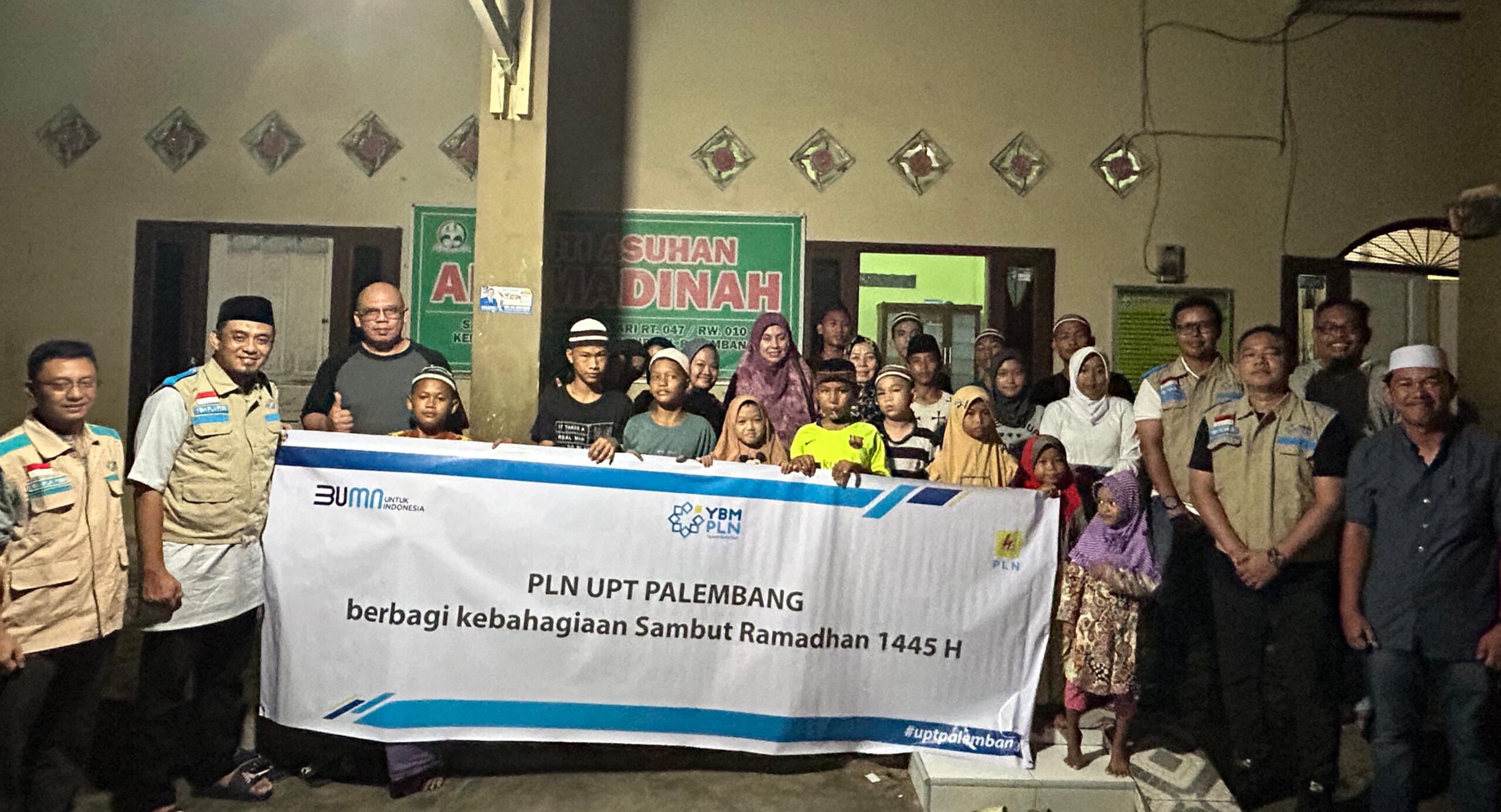 Palembang, PB – PLN Unit Pelaksana Transmisi Palembang (UPT) Palembang bersama Yayasan Baitul Maal (YBM) PLN melaksanakan program Berbagi Kebahagiaan Sambut Ramadhan 1445 H bersama anak-anak Panti Asuhan Al Madinah, Palembang.