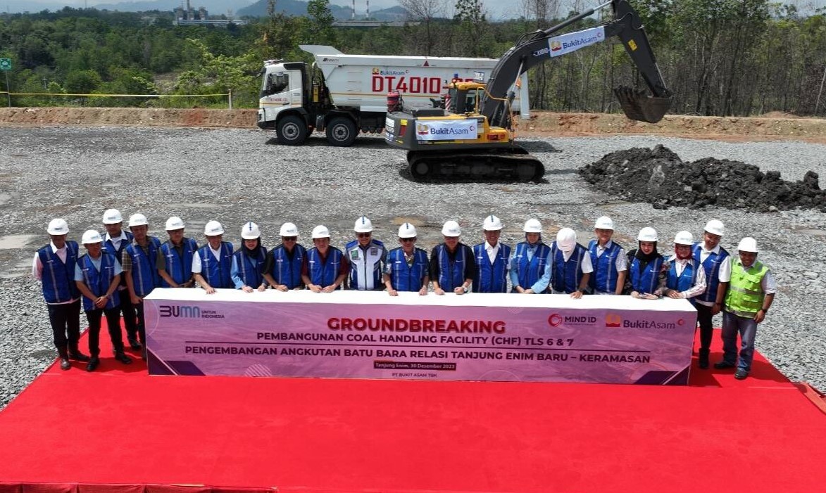 Tanjung Enim, PB – PT Bukit Asam Tbk (PTBA), anggota Grup MIND ID, memulai pembangunan fasilitas penanganan batu bara (coal handling facility) baru untuk meningkatkan kapasitas angkutan batu bara melalui jalur kereta api relasi Tanjung Enim – Keramasan. Hal ini ditandai dengan prosesi peletakan batu pertama (groundbreaking) yang dilakukan di Tanjung Enim pada Sabtu (30/12/2023).