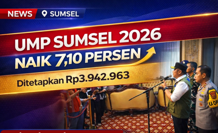 Palembang, PB – Pemerintah provinsi (Pemprov) Sumsel secara resmi mengumumkan kenaikan Upah Minimum Provinsi (UMP) Sumsel Tahun 2026 sebesar 7,10 persen dibandingkan tahun sebelumnya.